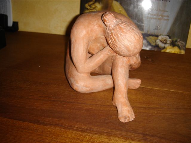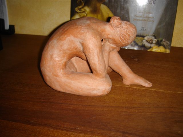 Ne pas trop charger en pigments, il faut garder une certaine transparence. Attention au bout de 2 à 3 passages, la terre n'étant plus poreuse, la patine va briller et il ne faut pas que cela brille sinon cela donne un effet plastique!